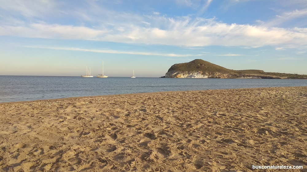 La playa de Monsul, es la más alejada de San José y tenemos 4 Km de pista forestal para llegar a ella, cuando llegas y miras a tu alrededor te das cuenta que estás rodeado de naturaleza, un paisaje precioso todavía protegido de la acción de hombre y que esperemos que así siga.