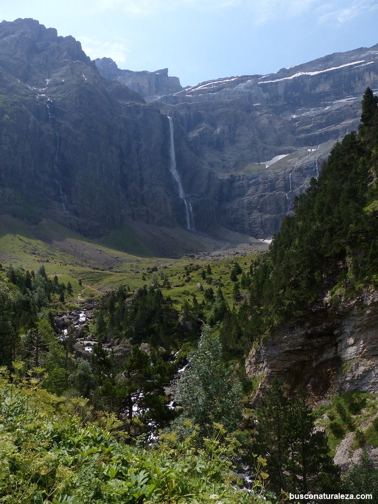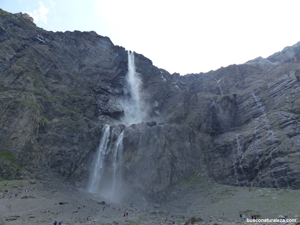 La cascada se forma debido a las nieves acumuladas en los picos de mas de 3.000 metros que rodean al circo y al glaciar del Marboré.