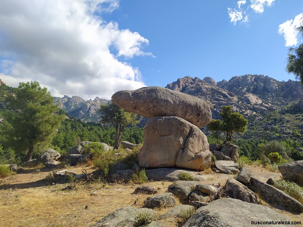La característica principal de ésta parte de la sierra son sus inmensos bloques de granito que forman un paraje singular, las formas que han creado el paso de los años en las rocas las hacen únicas y por eso muchas de ellas tienen su nombre propio, el más conocido es el Yelmo.