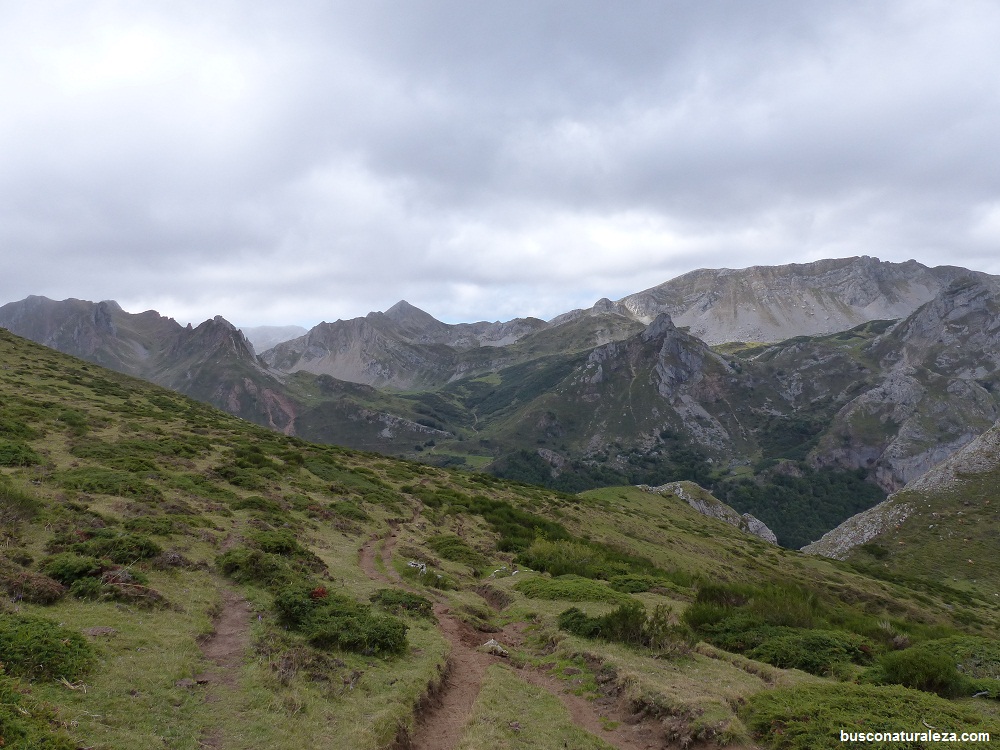 La bajada por éste lado es peor que por los lagos de Saliencia, mayor desnivel y no hay camino, es una estrecha senda que nosotros nos encontramos como un auténtico barrizal por lo que era mejor bajar por fuera de la senda.