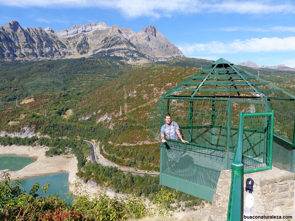 Desde el pueblo hay un pequeño paseo hasta el borde del acantilado donde está situado el mirador, es una jaula de hierro que está suspendida en el aire sobre un inmenso cortado, las vistas son impresionantes sobre el embalse, está muy chulo si no tienes vértigo.