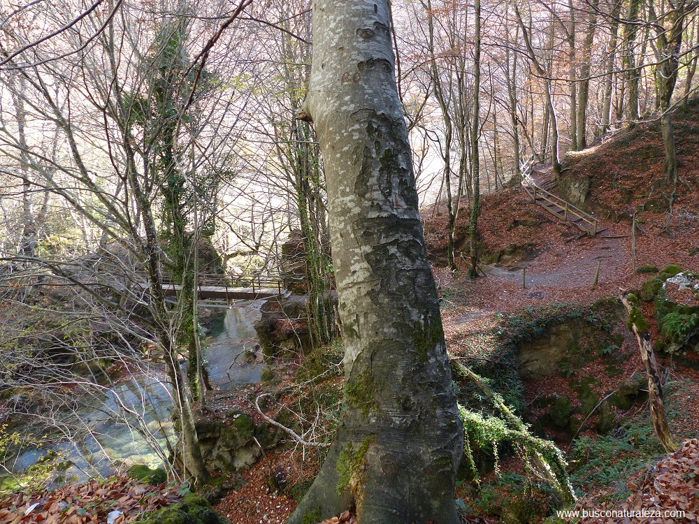 La segunda parte comienza cuando nos adentramos en el bosque de hayas y aquí el camino se separa y se hace circular para realizar la ida por uno y la vuelta por otro, aunque en el ultimo tramo de la ruta antes de llegar al nacimiento el camino se vuelve a juntar.