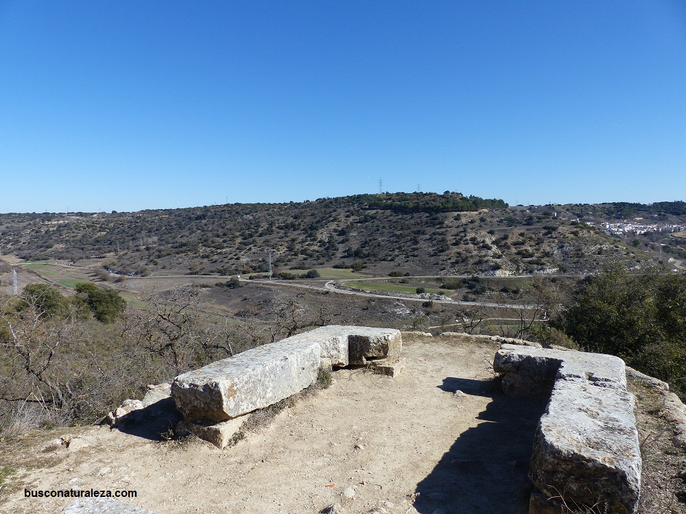 Pasada esta fábrica, comienza el trayecto más duro de toda la ruta, a partir de aquí hay que subir todo el desnivel descendido. Desde este lugar se puede observar el pueblo de La Olmeda de las Fuentes, me lo recomendaron en la oficina de turismo, pero por tiempo no pude visitarlo, pero ya desde aquí pude observar que merece la pena hacerles una visita. Al finalizar esta subida encontramos el Mirador del Balconcillo, desde aquí podemos contemplar las laderas y barrancos, así como el valle, además del pueblo que os indicaba anteriormente. Es un buen lugar para hacer un descanso y disfrutar de las vistas. A partir de aquí, el camino vuelve a ser totalmente llano y la distancia hasta el pueblo ya es mínima, hemos acabado nuestra ruta.