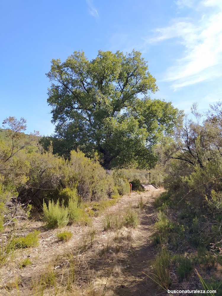 Continuamos bajando por el camino que nos llevará hasta un rebollar centenario, inmensos árboles que nos proporcionan una de las pocas sombras que encontraremos en la ruta, donde han situado estrategicamente algunos bancos.