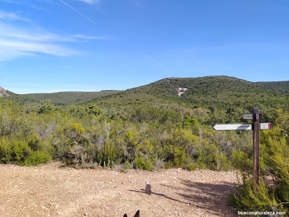 La ruta se desvía mas adelante del cortafuegos para girar a la derecha y caminar en paralelo a las Rañas, los caminos que salen desde aquí hacia la ellas tienen indicaciones de prohibido el paso por lo que ésto es lo mas cercano que estaremos.
