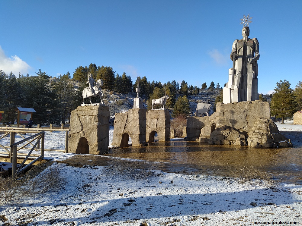 Este lugar está junto a la carretera apenas hay que salirse 100 metros para llegar al parking y junto a él encontramos el monumento construido, una pequeña laguna y unos carteles explicativos.