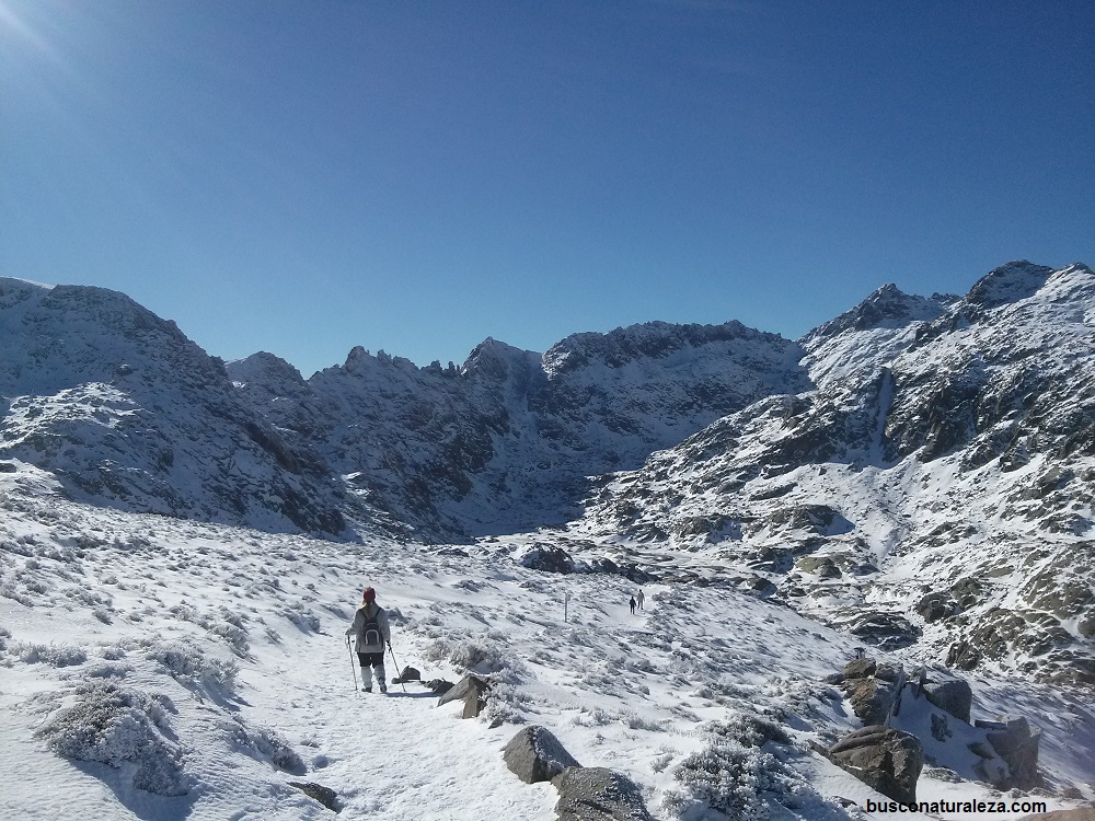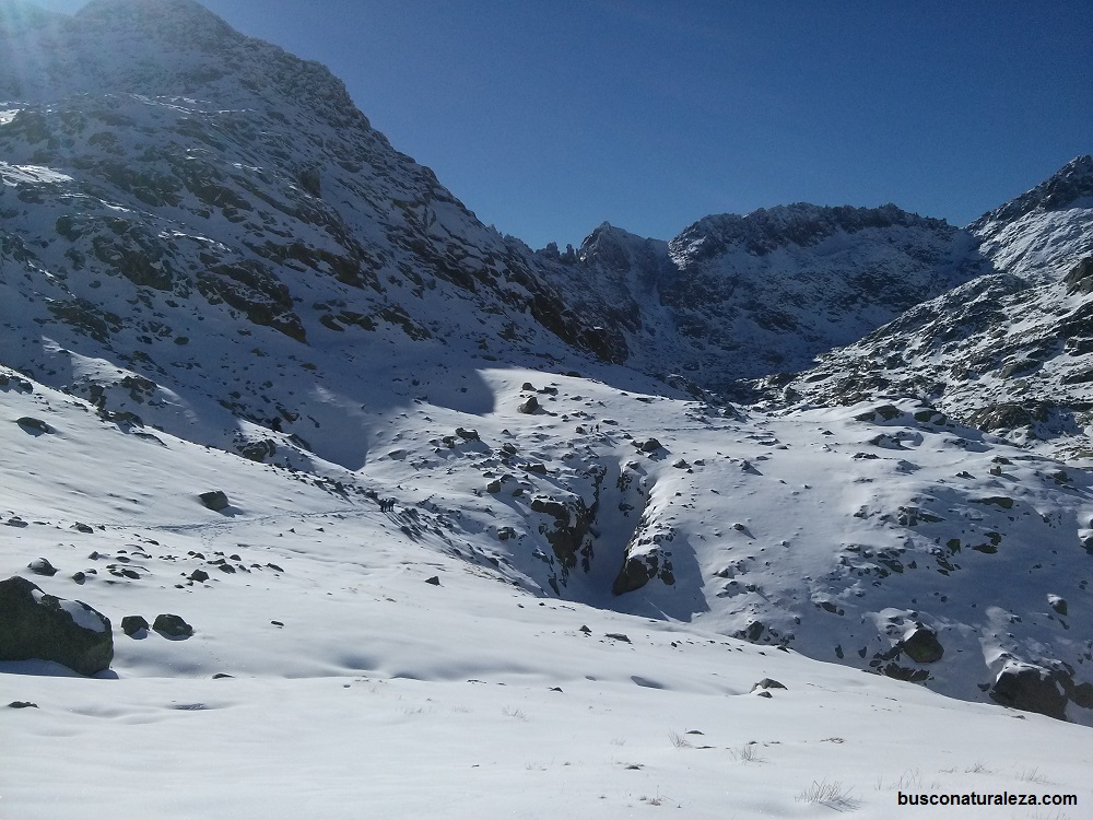 Desde aquí las vistas del paisaje son espectaculares, el circo de Gredos con la laguna grande justo en el centro bajo esas moles de granito, y personalmente me parece mas impresionante en invierno todo nevado y con la laguna grande congelada.