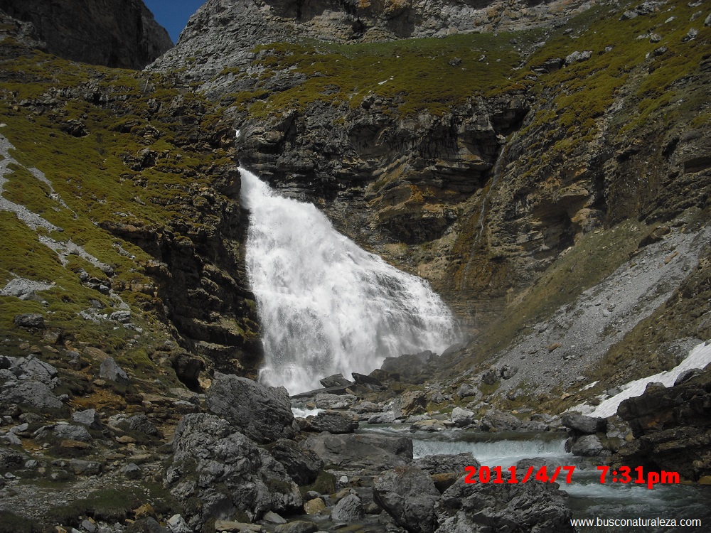 Concretamente al final de este valle y como si fuera un santuario se sitúa la cascada de “cola de caballo”, una maravilla de sitio en la que merece la pena estar al menos una vez en la vida, te encuentras en el fondo de un valle rodeado de naturaleza 100% para llegar hasta aquí lo más sencillo es hacer la ruta desde la pradera de Ordesa pasando por las Gradas de Soaso, todo el camino tiene un encanto especial.
