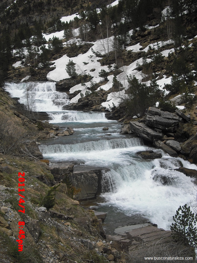 En éste tramo de bosque vamos ganando altura poco a poco por un camino muy cómodo y ancho y siempre a la sombra que viene muy bien en los meses de verano, hasta que los árboles empiezan a desaparecer debido a la altura y comienza a aparecer la pradera, acompañados de una especie de terrazas que va formando el río Arazas a nuestro lado que se denominan las «Gradas de Soaso».